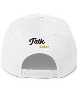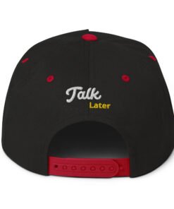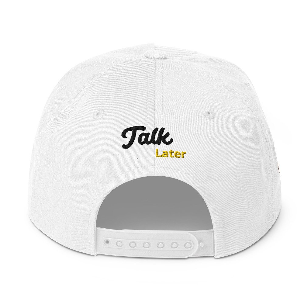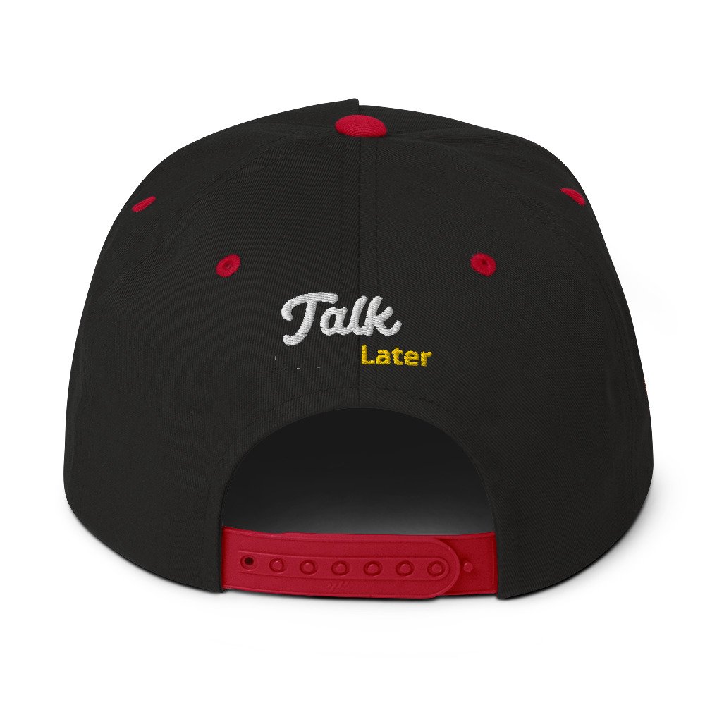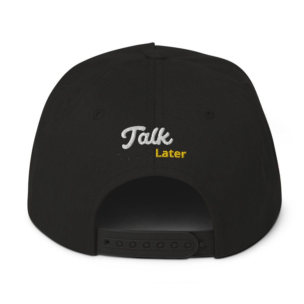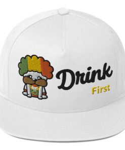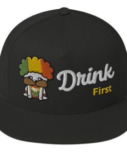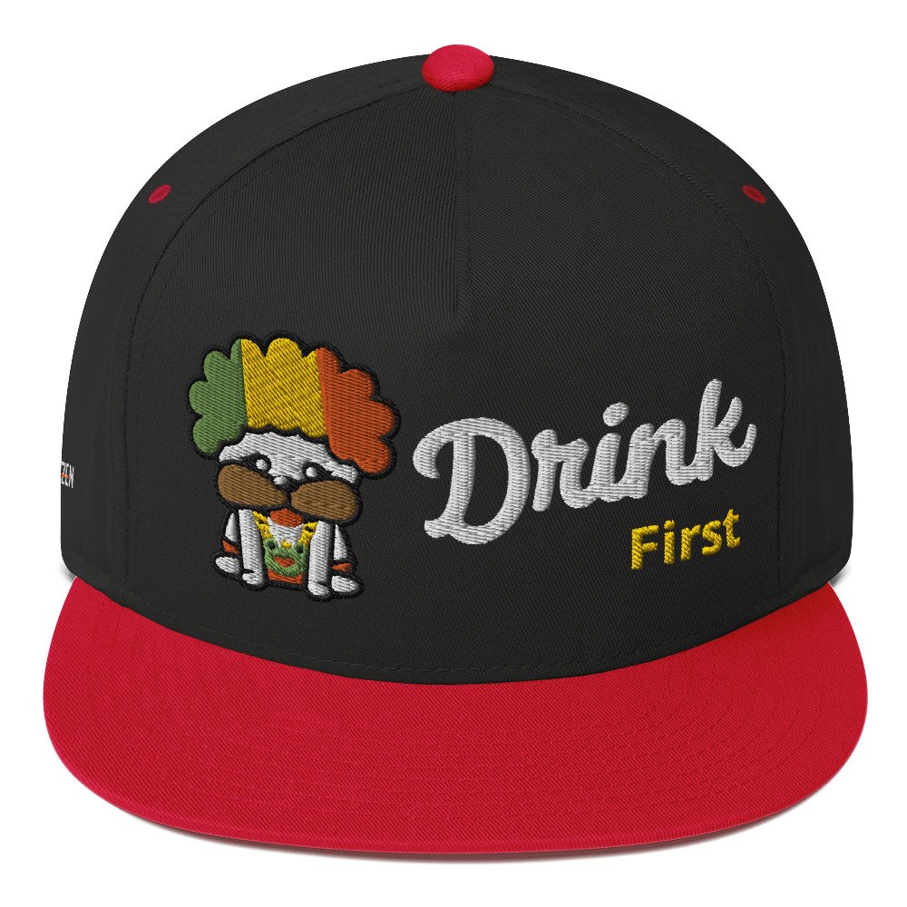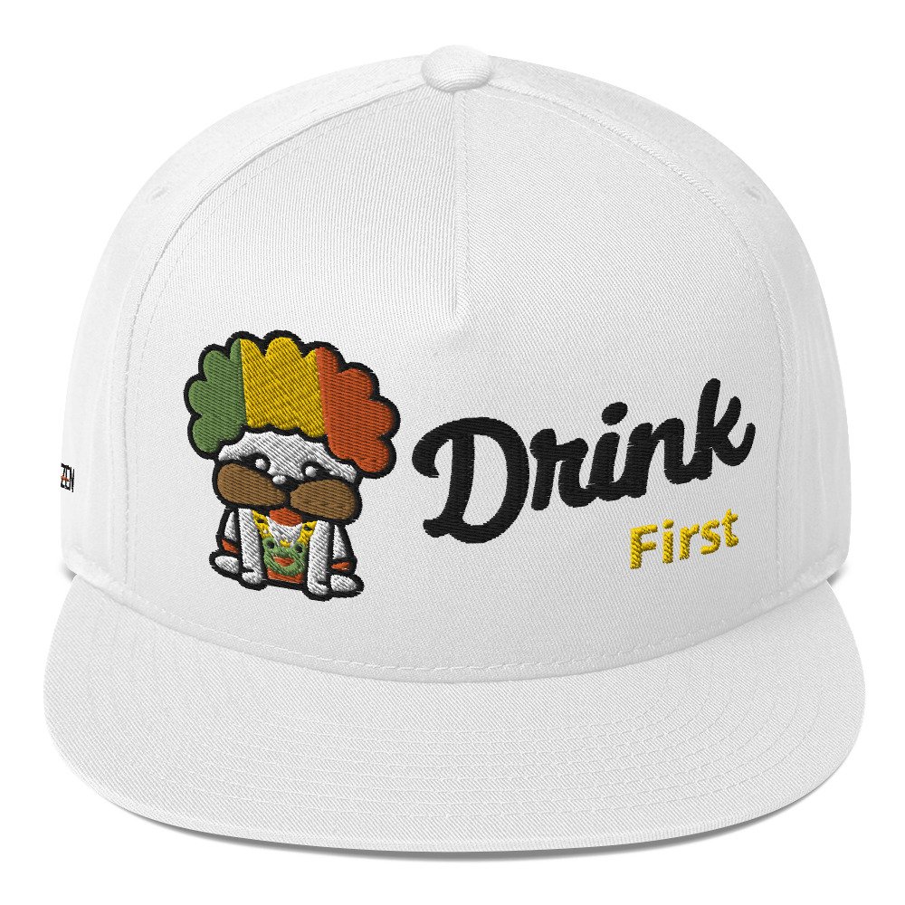 Introducing the Snax Don Flat Bill Cap, a must-have accessory for anyone looking to add a touch of fun and style to their wardrobe. This cap features our exclusive New Hip Hop Star Pug cartoon embroidery on the front, bringing a playful vibe to your outfit. The front of the cap boldly displays the phrase “Drink First,” while the back completes the message with “Talk Later,” adding a humorous twist to this trendy headwear.