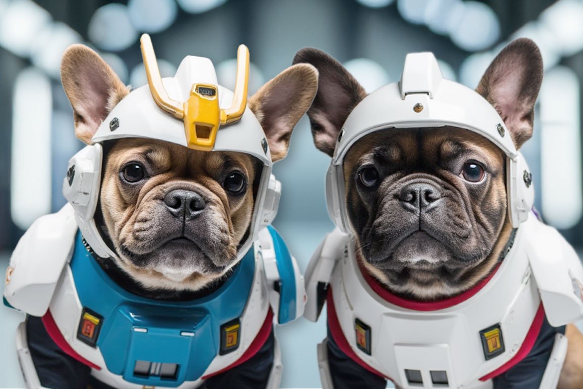 Epic digital sci-fi portrait of your pet in a bold, white-blue-red Gundam-inspired mech suit—dynamic and futuristic.