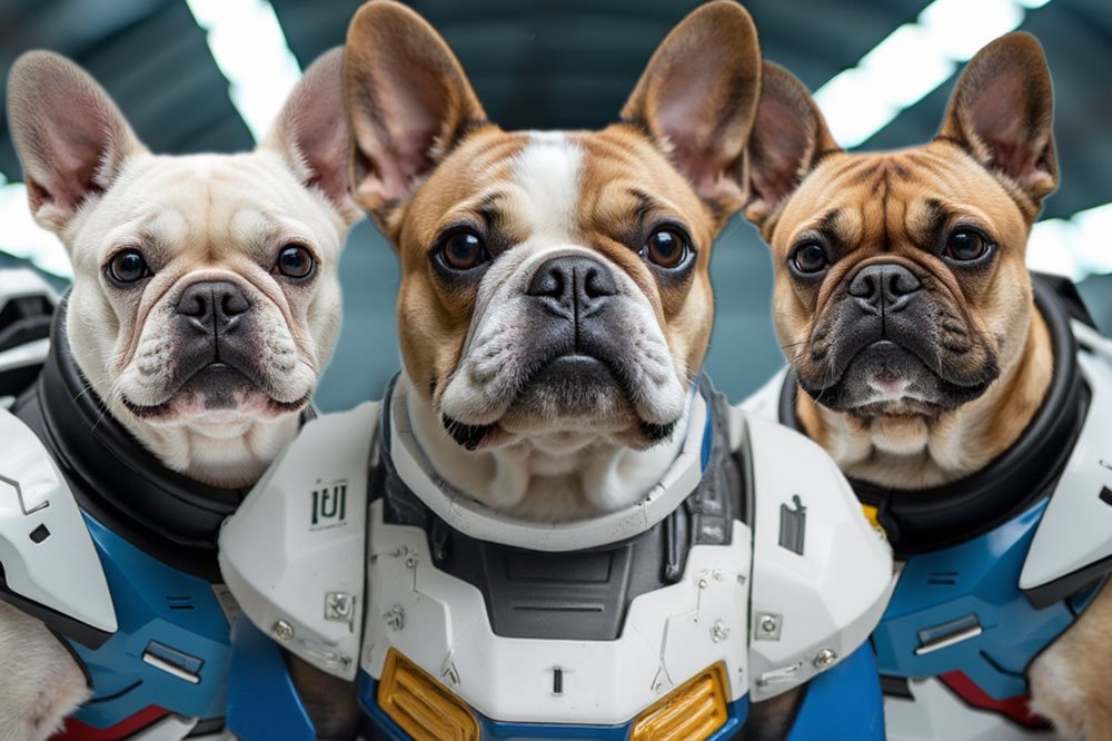Custom Digital Gundam-Style Pet Portrait – Three Pets