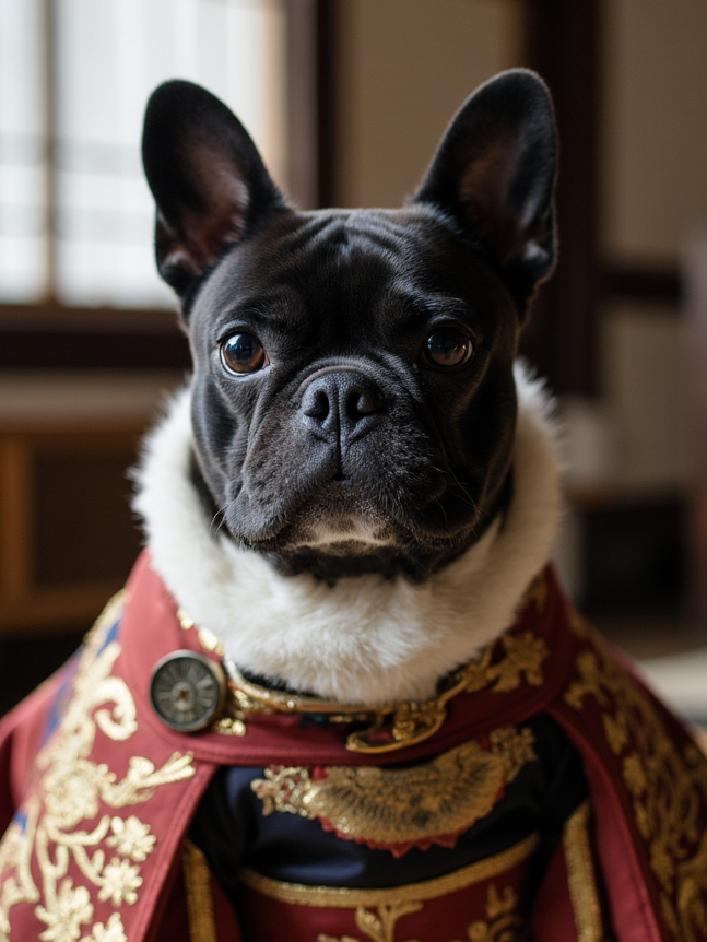 This portrait brings the sophistication of Japanese royalty to your beloved companion—perfect for those who love tradition with a touch of grandeur.